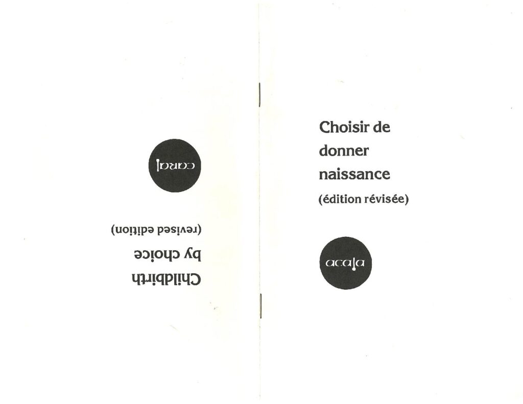 Childbirth by Choice (Revised Edition) / Choisir de donner naissance (édition révisée) This nine page bilingual booklet by the Canadian Association for the Repeal of the Abortion Law (CARAL) discusses the concept of “childbirth by choice”. It touches on health risks, adoption, contraception, law and statistics, public opinion and worldwide trends. This booklet is the revised edition of the 1979 Childbirth by Choice booklet. Metadata Title: Childbirth by Choice (Revised Edition) / Choisir de donner naissance (édition révisée) Publisher: Canadian Association for the Repeal of the Abortion Law (CARAL) Region: National (all of Canada)