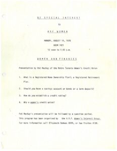 This section contains material on the fight against systemic economic inequality that kept women in situations of economic dependency and/or poverty. Items reflect a wide range of concerns, including income insecurity, housing and homelessness, unemployment insurance, social assistance, and pensions among others. While many of these fights for economic justice and security were specific to women, they also took place alongside others in economically precarious situations.