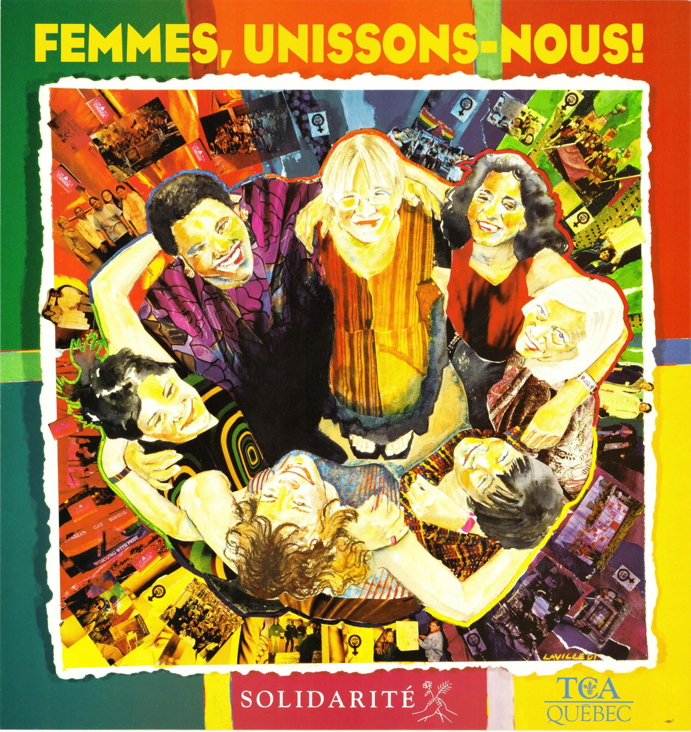 This section contains material on solidarity organizing and coalition building by and within the feminist movement. It encompasses solidarity with struggles in Canada such as Indigenous-led activism against colonialism; anti-racism protests, labour actions, and human rights organizing among other social justice causes.