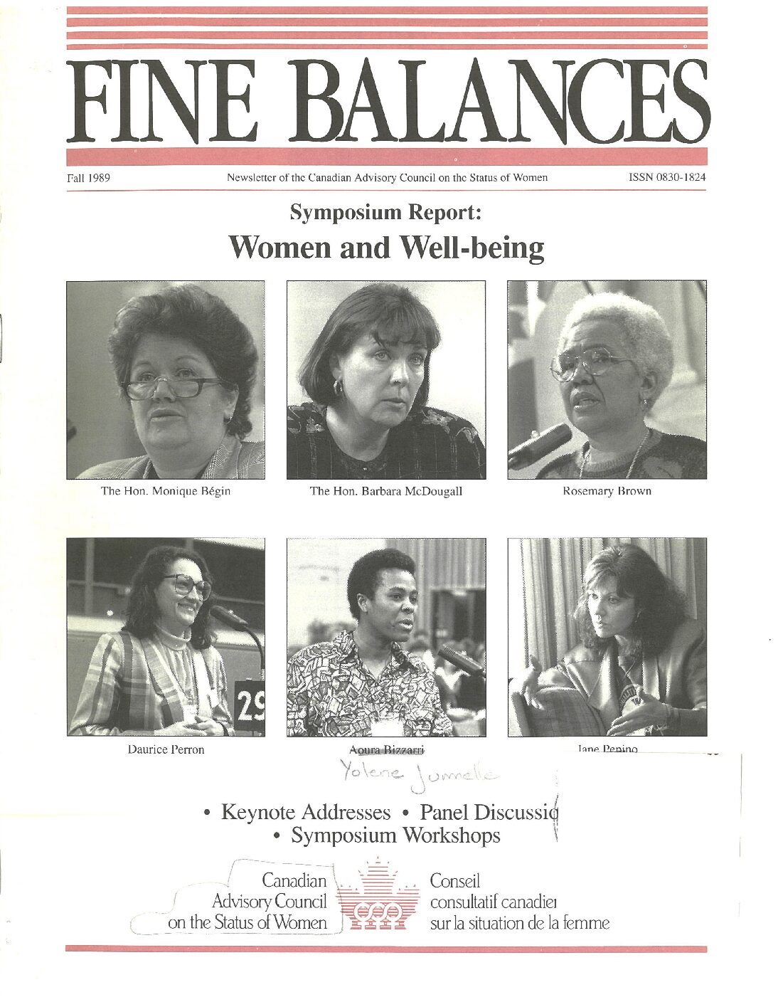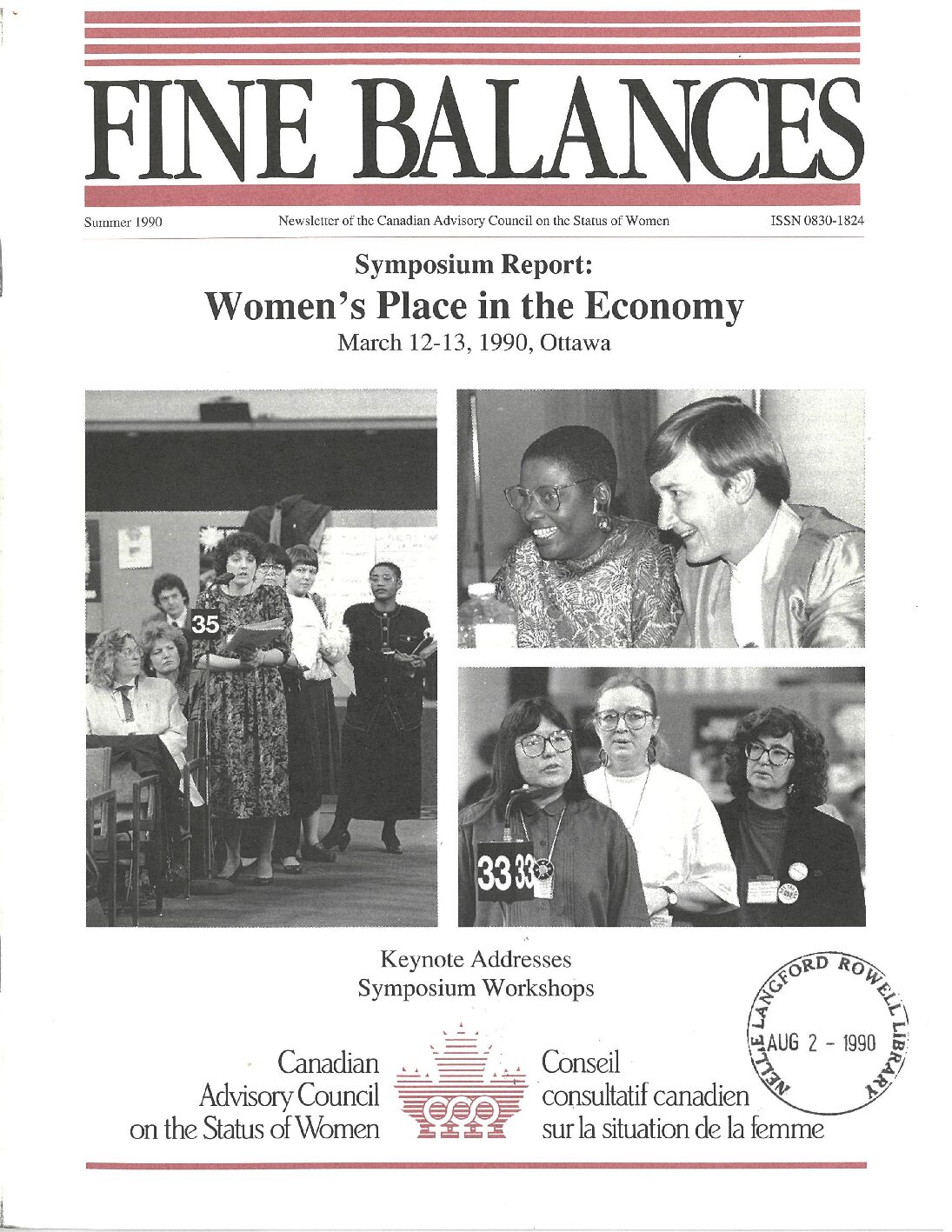 Fine Balances is one of several periodicals produced by the Canadian Advisory Council on the Status of Women (CACSW). This bilingual newsletter provided readers with up-to-date information regarding Council activity as well as a variety of prominent issues facing Canadian women of the day.