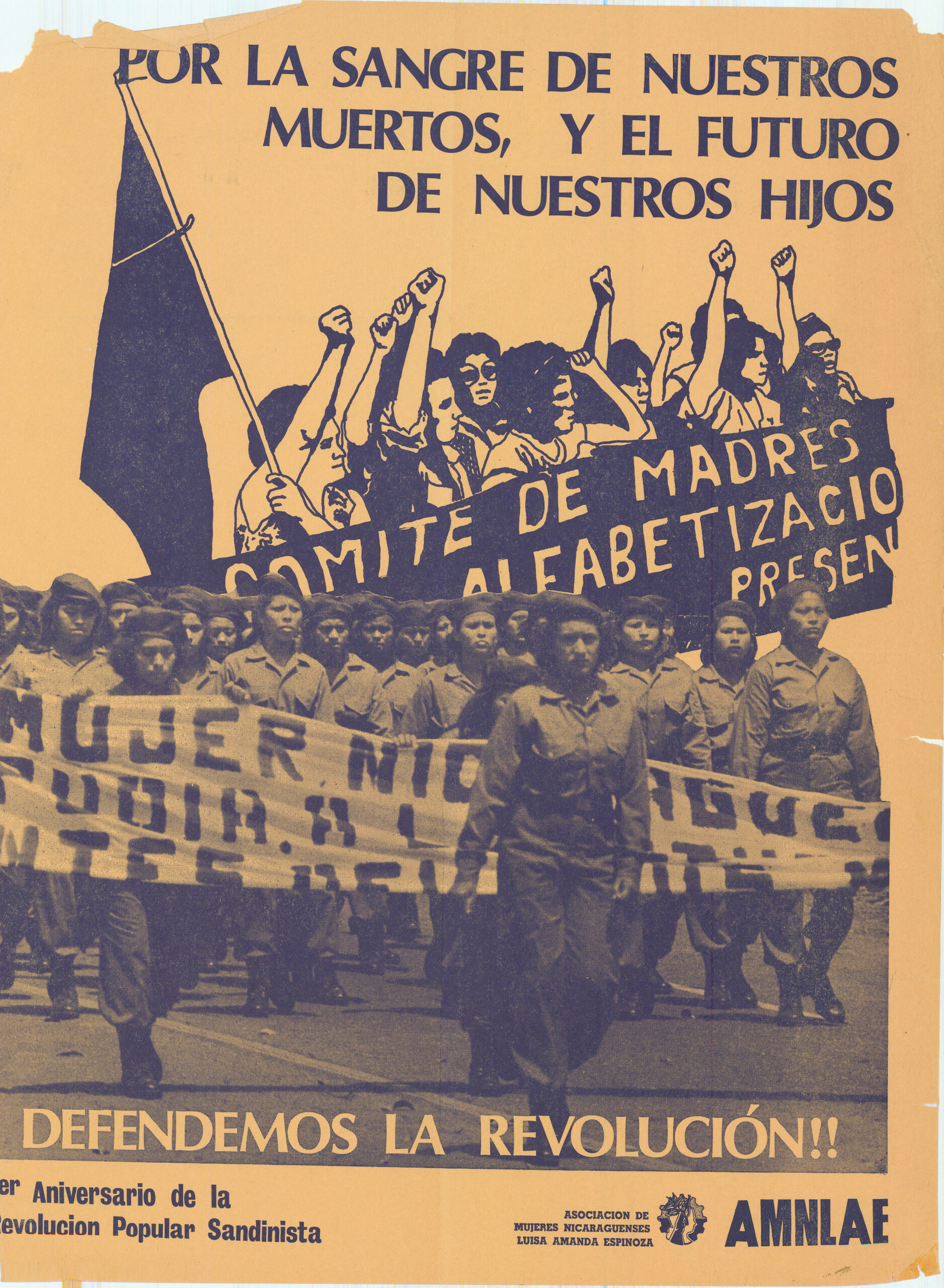 Por La Sangre De Nuestros Muertos, Y El Futuro De Nuestros Hijos This undated poster, printed by Press Gang for the Asociacion De Mujeres Nicaraguenses Luisa Amanda Espinoza, addresses the anniversary of the Sandinista People’s Revolution in Nicaragua following the 1978-79 uprising against the dictator Anastasio Somoza. This material is reproduced here with the permission of Press Gang, a feminist printing and publishing collective active in Vancouver from the early 1970s to 2002. Posters by Press Gang are held at the Simon Fraser University Archives. Metadata Title: Por La Sangre De Nuestros Muertos, Y El Futuro De Nuestros Hijos Region: British Columbia City/Town: Vancouver